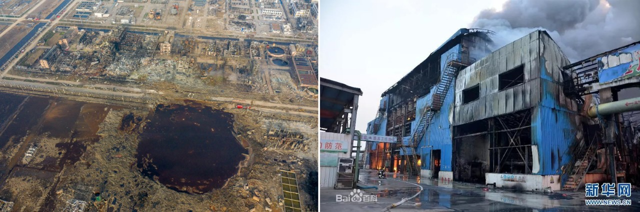 (左)江蘇響水“3·21”特別重大爆炸事故與(右)江蘇聚鑫生物“12·9”重大爆炸事故