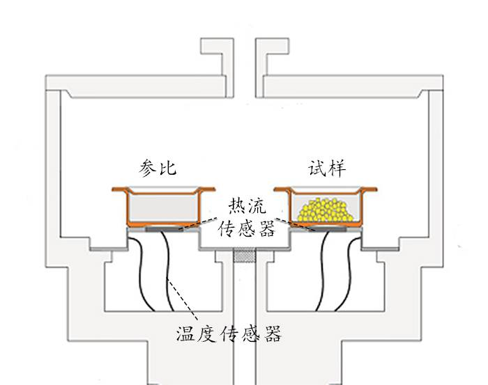 在樣品和參比物始終保持相同溫度的條件下,測(cè)定為滿足此條件樣品和參比物兩端所需的能量差,并直接作為信號(hào) (熱量差) 輸出。