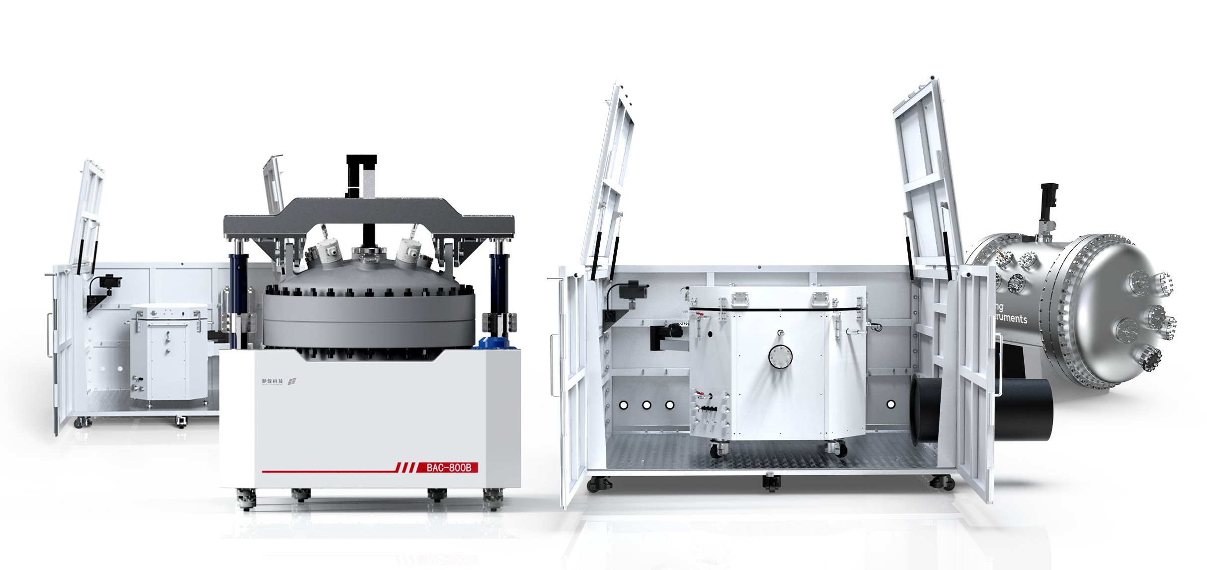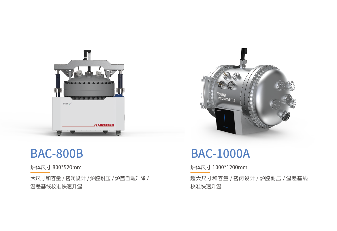 產(chǎn)品型號(hào)包含BAC-800B和BAC-1000A,密閉型爐腔完全按照GB/150壓力容器設(shè)計(jì)規(guī)范進(jìn)行開(kāi)發(fā),可持續(xù)承壓2MPa,同時(shí)具有優(yōu)異的密封性,創(chuàng)造性地將定容燃燒彈和ARC功能合二為一,無(wú)需配置密封罐即可同步完成大尺寸、大容量電芯熱失控特征溫度及產(chǎn)氣測(cè)試,進(jìn)一步提高試驗(yàn)的效率和可靠性。另外,通過(guò)腔體可調(diào)式泄壓設(shè)計(jì),解決了國(guó)外某廠商絕熱儀器存在的腔體和電池表面溫差大,絕熱性能不佳的問(wèn)題。