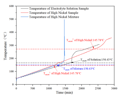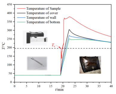 圖3 電池材料在TAC-500A中的熱分解溫升曲線