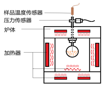 絕熱量熱技術和絕熱量熱儀最初是由美國標準ASTM E-1981進行定義的,其原理模型如圖1所示。根據標準,在絕熱量熱實驗中,試樣處于一個可以進行環(huán)抱式加熱的爐體中央,爐體通過自然對流和熱傳導等方式對樣品周圍的環(huán)境溫度進行控制,試樣溫度與所處環(huán)境溫度始終相同,試樣處于動態(tài)熱封閉狀態(tài),熱量無法傳入與傳出,樣品溫度完全由其自身的吸放熱過程決定。