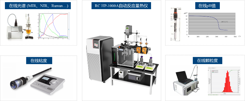 原位數(shù)據(jù)聯(lián)用是ICPA技術(shù)平臺(tái)的另一大特點(diǎn)和優(yōu)勢(shì),通過組合分析放熱功率、分子光譜、粘度和顆粒度等維度的反應(yīng)特征信息,可以全面、深入地認(rèn)識(shí)化學(xué)反應(yīng)過程。