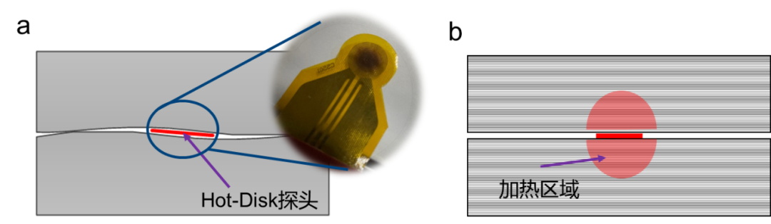 圖6 Hot Disk法測(cè)試的接觸熱阻(a)和僅能反映樣品局部特征(b)的問(wèn)題示意圖