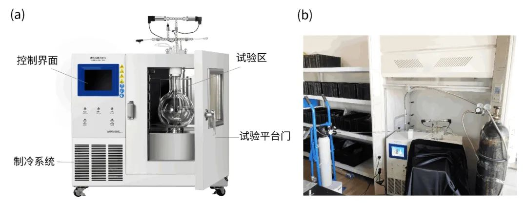 圖2 (a) HWP21-30S爆炸極限試驗(yàn)儀; (b) 實(shí)驗(yàn)裝置現(xiàn)場圖