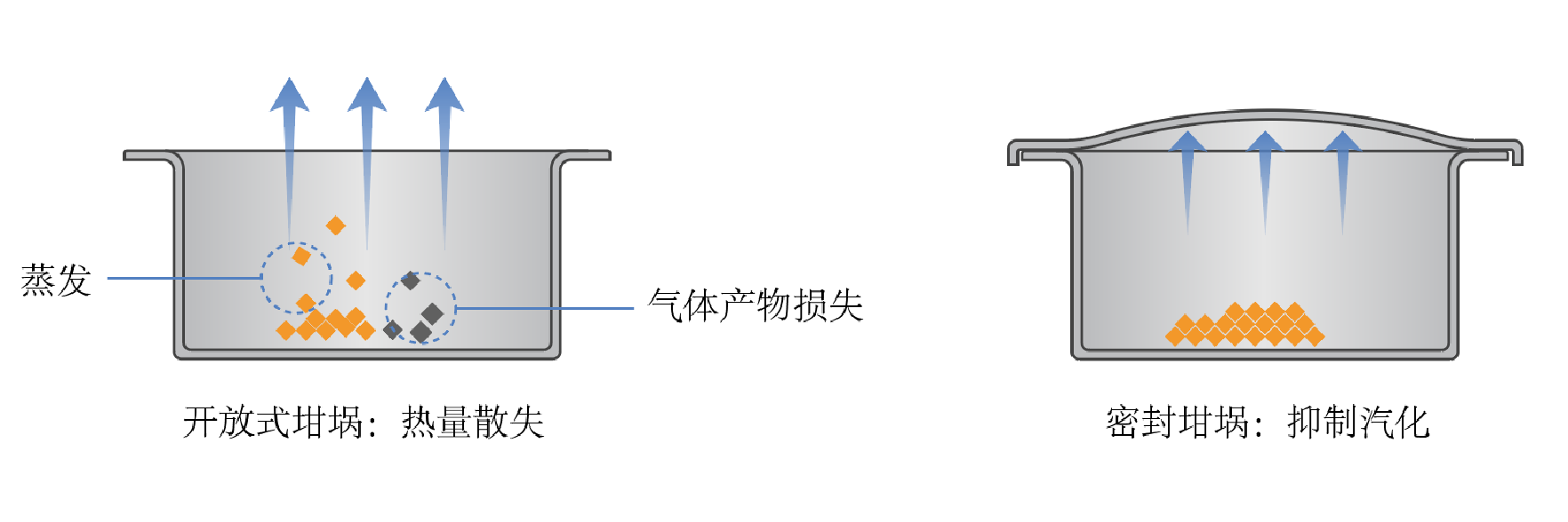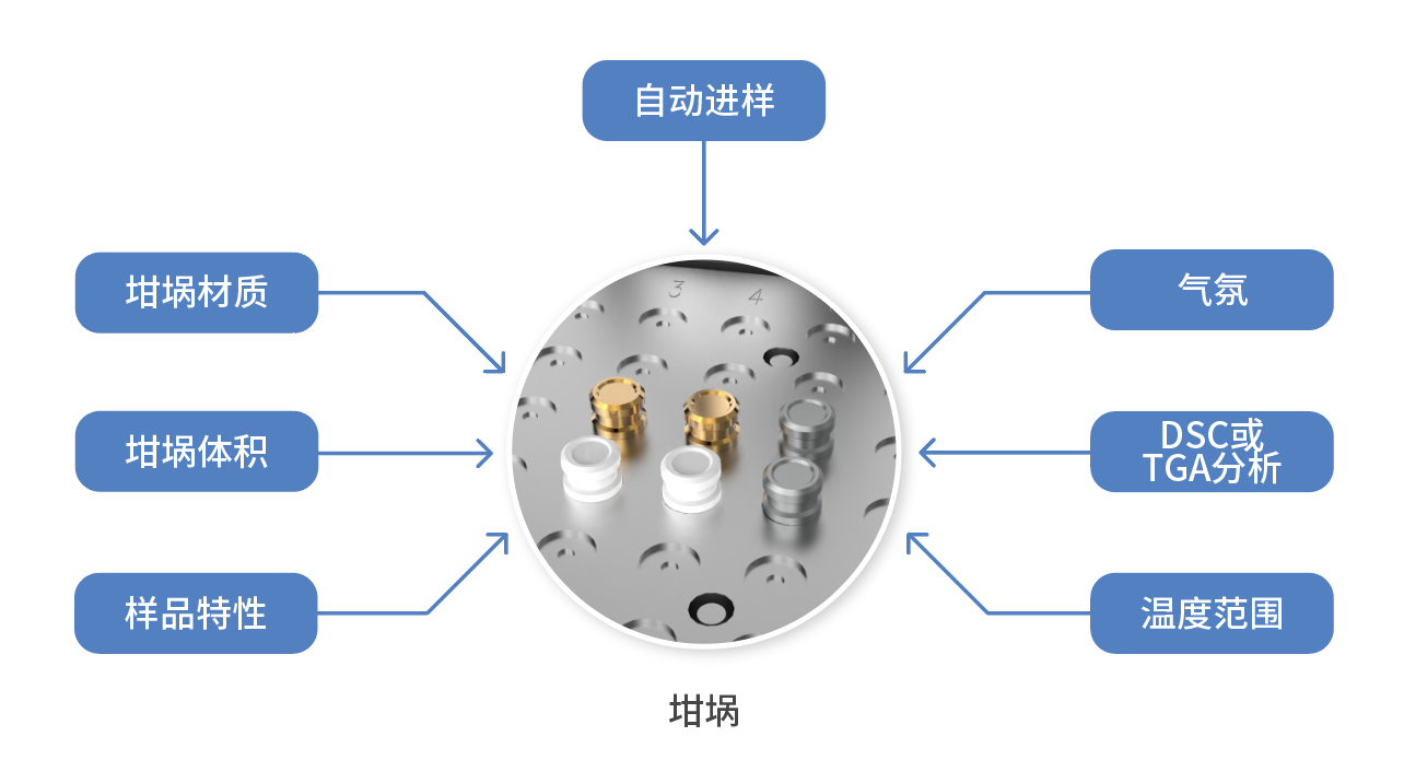 坩堝選擇考慮的因素眾多,包括坩堝體積、坩堝使用溫度、坩堝材質等,選擇適合的坩堝可幫助取得理想的測量結果[1-2]。