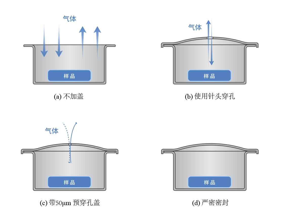 坩堝蓋用于密封坩堝,以抑制溶劑蒸發(fā),或壓實樣品。根據不同應用場景,坩堝蓋的使用可分為4種情況: