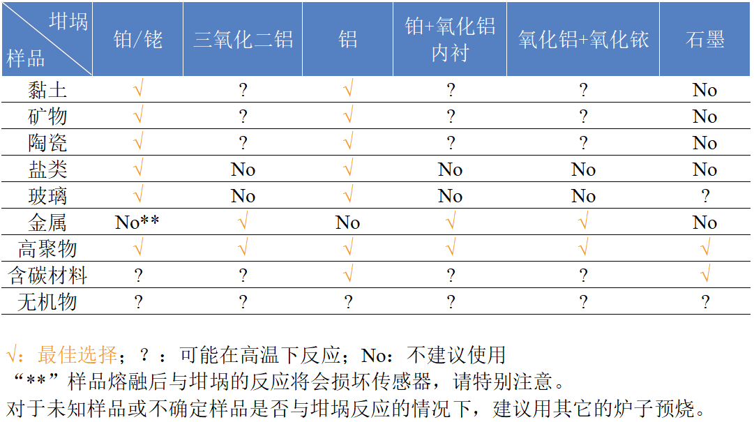 表1 不同樣品種類對坩堝選型的影響[1-2]