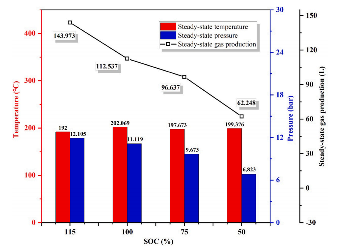 圖6 不同SOC電池?zé)崾Э禺a(chǎn)氣量