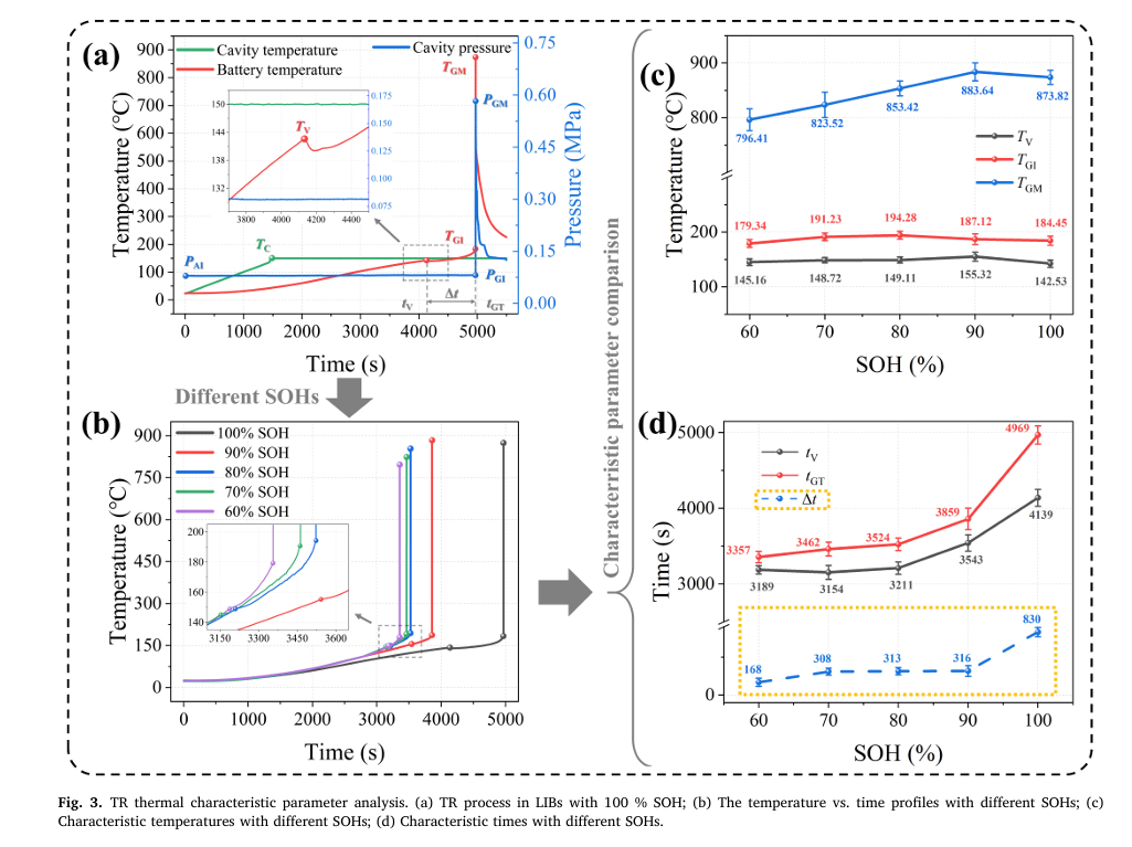 本研究還通過開展不同SOH電池的熱失控噴射火行為實驗,結(jié)合熱失控產(chǎn)氣參數(shù)進行應(yīng)用場景下的綜合特性分析,為儲能系統(tǒng)及電動汽車的電池管理系統(tǒng)(BMS)安全設(shè)計提供了關(guān)鍵技術(shù)指導(dǎo)。